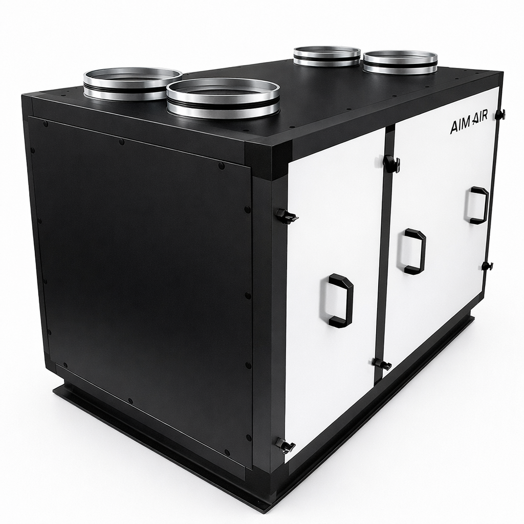 Приточно-вытяжная установка AIMAIR SAN 1000V-E1.8/EC-PU4 предназначена для организации приточной и вытяжной вентиляции офисных помещений, магазинов, кафе и небольших залов и подачи свежего наружного воздуха в обслуживаемые помещения по площади до примерно 400 м². Такое решение позволяет построить систему вентиляции помещений с контролируемым воздухообменом.