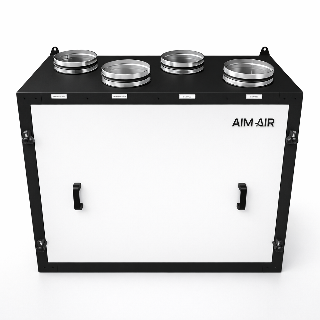 Приточно-вытяжная установка AIMAIR SAN 400V-E0.8/EC-PU4 предназначена для организации приточной и вытяжной вентиляции офисных помещений, магазинов, кафе и небольших залов и подачи свежего наружного воздуха в обслуживаемые помещения по площади до примерно 160 м². Такое решение позволяет построить систему вентиляции помещений с контролируемым воздухообменом.