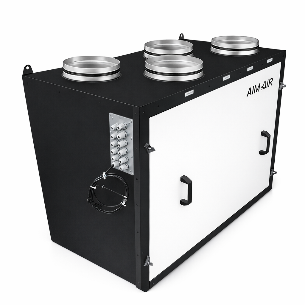 Приточно-вытяжная установка AIMAIR SAN 600V-E1.9/EC-PU4 предназначена для организации приточной и вытяжной вентиляции офисных помещений, магазинов, кафе и небольших залов и подачи свежего наружного воздуха в обслуживаемые помещения по площади до примерно 240 м². Такое решение позволяет построить систему вентиляции помещений с контролируемым воздухообменом.