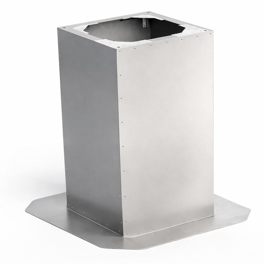 Высота стакана около 105 см помогает сформировать устойчивый вертикальный участок воздуховода и учесть толщину кровли и утеплителя. Корпус из оцинкованной стали рассчитан на работу на открытом воздухе и обеспечивает жёсткое, геометрически правильное основание для монтажа крышного вентилятора.