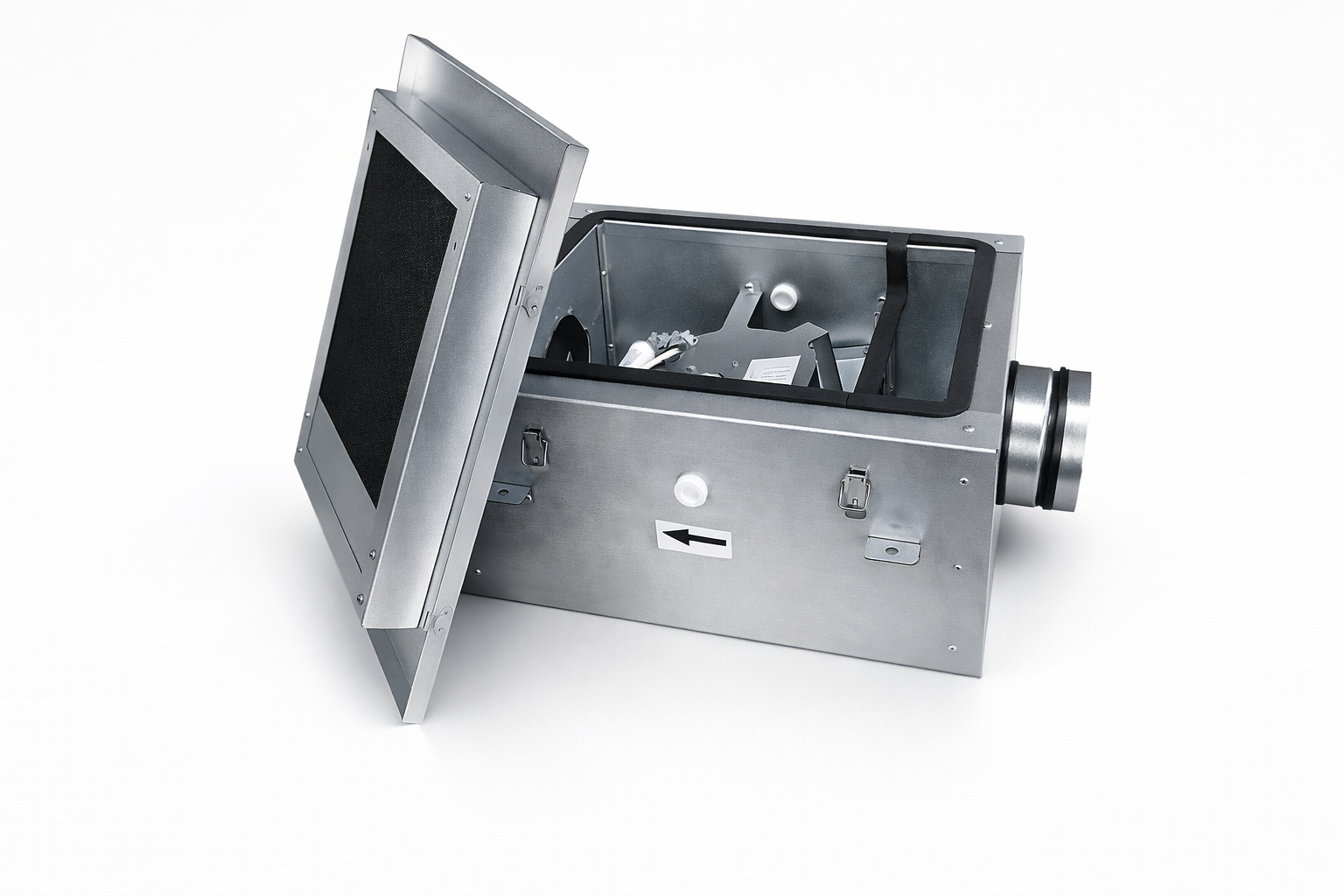 Шумоизолированный корпус снижает передачу шума в помещения, а электронно-коммутируемый двигатель позволяет плавно регулировать скорость вращения и расход воздуха. Вентилятор развивает напор до 971 Па при мощности около 0,18 кВт, что даёт серьёзный запас по давлению для работы в протяжённых и разветвлённых системах вентиляции с несколькими фильтрами и регулирующими элементами. Уровень шума порядка 40 дБ остаётся приемлемым для технических зон и подвесных потолков, а рабочий диапазон температур от -30 до +40 °С обеспечивает надёжную эксплуатацию в течение всего года.