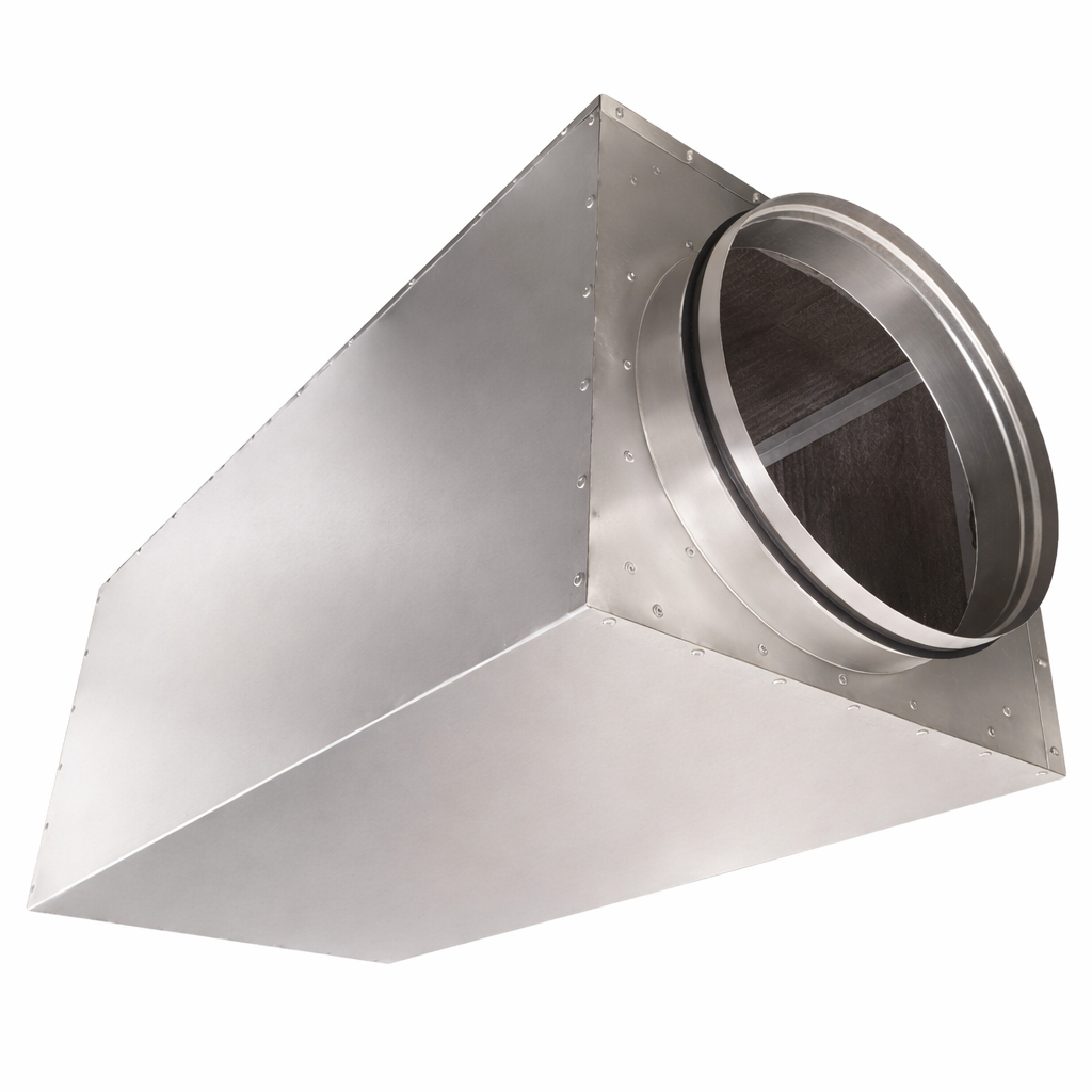 Корпус шумоглушителя изготовлен из оцинкованной стали, внутри расположен звукопоглощающий слой из минераловатного материала с защитным покрытием. Номинальная длина шумоглушителя 300 мм обеспечивает заметное снижение уровня шума на участке между вентустановкой и помещениями при сохранении расчётного расхода воздуха по трассе.