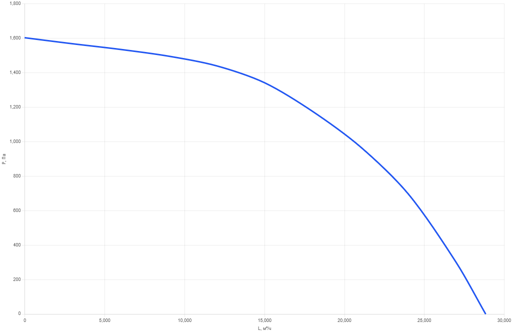 Шумоизолированный корпус из оцинкованной стали снижает передачу шума и вибраций на строительные конструкции и позволяет размещать вентилятор ближе к рабочим зонам. максимальный напор до 1603 Па, электродвигатель мощностью порядка 9.93 кВт обеспечивают уверенную работу вентилятора в протяжённых и разветвлённых сетях прямоугольных воздуховодов.