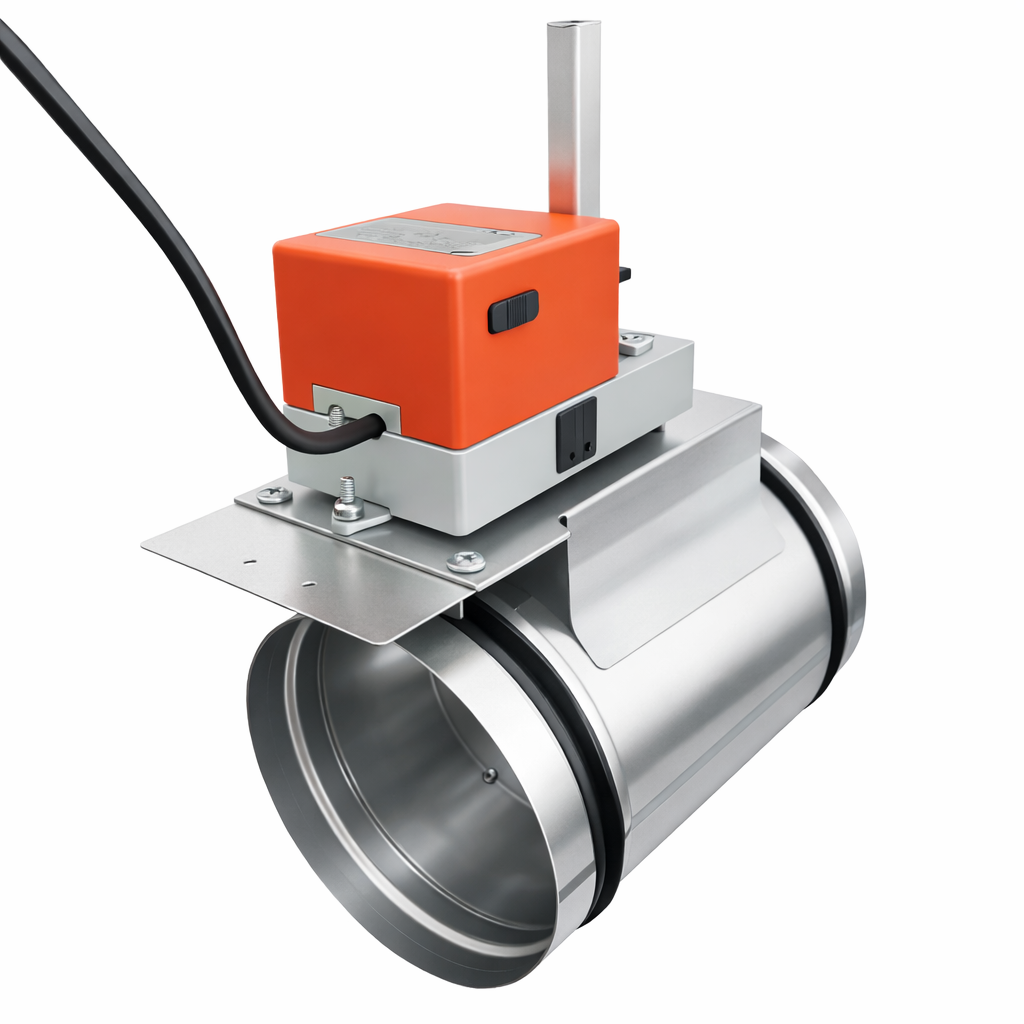 Конструкция корпуса ориентирована на подключение к круглым воздуховодам, поэтому клапан легко встраивается в существующие каналы без сложных переходников. Клапан оснащён электроприводом без пружинного возврата, что удобно для стандартных режимов работы в составе системы автоматизации вентиляции. Плавное изменение положения заслонки позволяет точно настраивать объём приточного и вытяжного воздуха между помещениями.