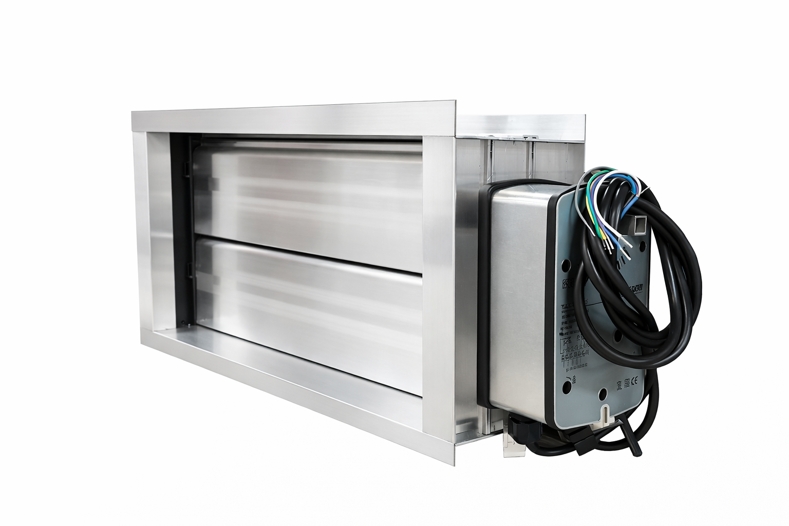 Прямоугольная форма корпуса удобна для подключения к воздуховодам соответствующего сечения и помогает сохранить компактную компоновку сети. Клапан оснащён электроприводом с пружинным возвратом, поэтому при отключении питания заслонка автоматически возвращается в безопасное положение. Плавное изменение положения заслонки позволяет точно настраивать объём приточного и вытяжного воздуха между помещениями.