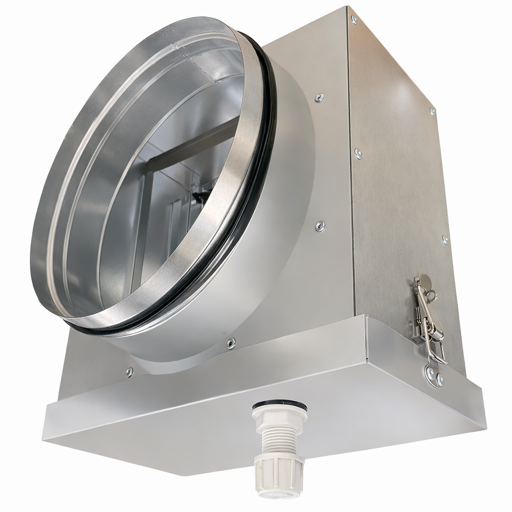 Корпус жироуловителя с присоединительным диаметром используют для размещения сетчатых жироулавливающих кассет в составе вытяжной вентиляции профессиональных кухонь ресторанов, кафе и столовых. Корпус встраивают в участки круглых воздуховодов и вытяжные зонты, чтобы собрать жировой туман до попадания в основную сеть воздуховодов.