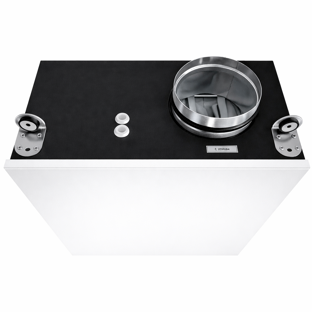 В составе установки используются энергоэффективный EC-вентилятор, фильтр класса G4, керамический электрический нагреватель приточного воздуха, поэтому узел работает как готовый приточный агрегат для объекта. По основным характеристикам мощность вентилятора около 0.09 кВт, максимальный напор до 568 Па, уровень шума порядка 36 дБА, этого достаточно для типовых сетей воздуховодов с решетками и гибкими вставками. Установка рассчитана на питание от однофазной сети 220 В, это упрощает подключение в квартирах, коттеджах и небольших офисах без доработки электросети. Управление по Wi Fi позволяет контролировать работу установки и менять режимы через смартфон или браузер, что удобно службе эксплуатации и владельцу объекта.