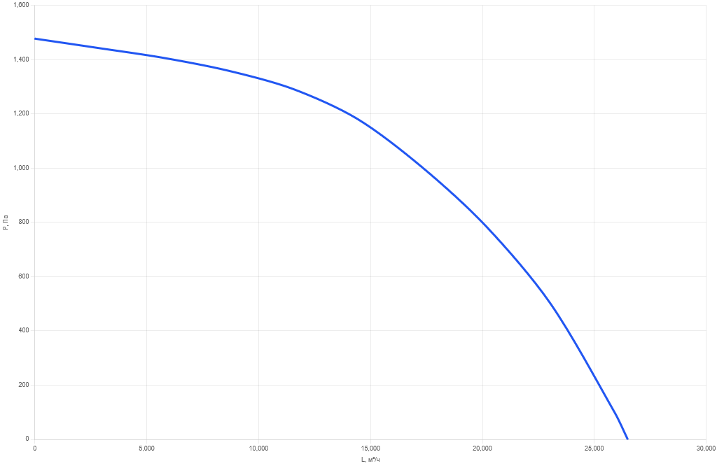 В составе установки используются энергоэффективный EC-вентилятор, фильтр класса G4, Водяной нагр. для подключения к системе отопления здания, поэтому узел работает как готовый приточный агрегат для объекта. По основным характеристикам мощность вентилятора около 9.93 кВт, максимальный напор до 1477 Па, уровень шума порядка 58 дБА, этого достаточно для типовых сетей воздуховодов с решетками и гибкими вставками. Питание от трехфазной сети 380 В ориентировано на стабильную работу при высокой нагрузке и хорошо сочетается с инженерной инфраструктурой современных бизнес центров и торговых комплексов.