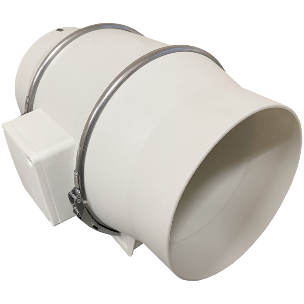 Корпус из прочного пластика и мотор-колесо смешанного типа рассчитаны на длительную работу в бытовых и лёгких коммерческих системах. Двухскоростной AC-двигатель 1~220 В развивает напор до 300 Па, благодаря чему вентилятор уверенно работает в разветвлённых сетях воздуховодов. Мощность порядка 0,07 кВт остаётся экономичной, а уровень шума около 35 дБ делает оборудование приемлемым для размещения рядом с рабочими зонами и жилыми комнатами. Класс защиты IP44 и температурный диапазон от -20 до +40 °С позволяют использовать вентилятор в стандартных условиях эксплуатации.
